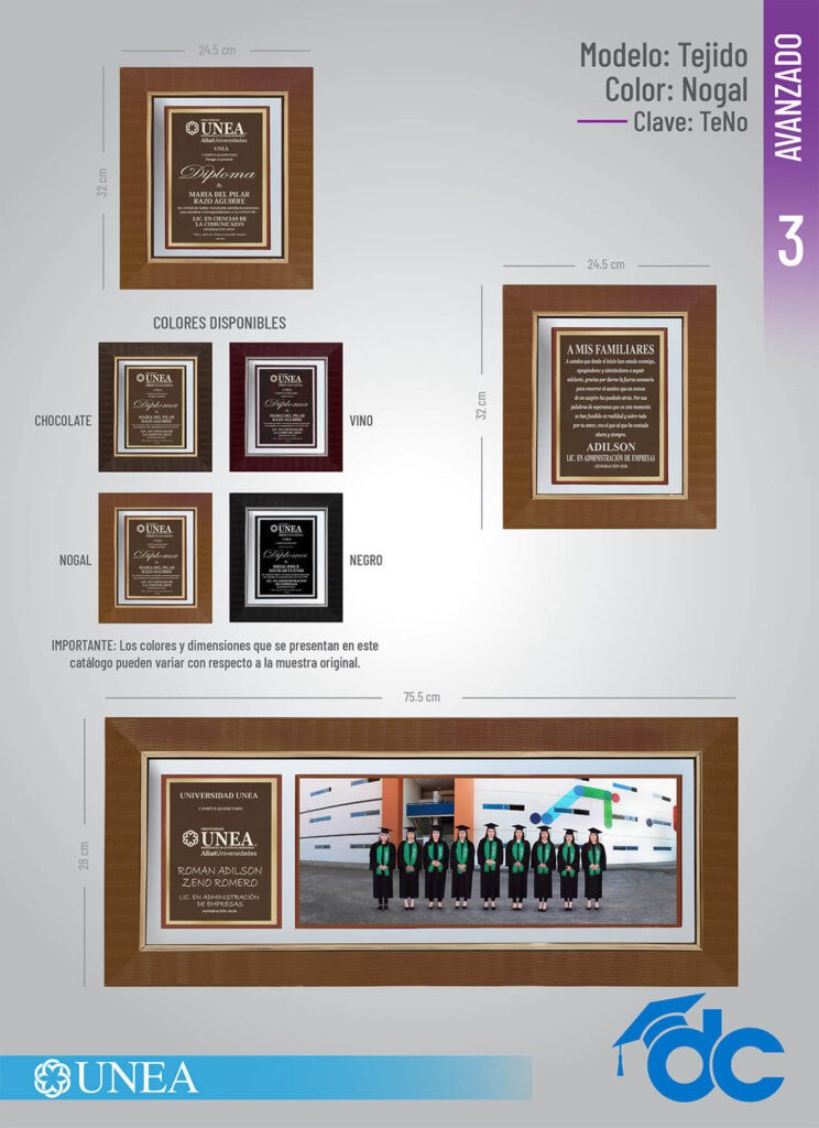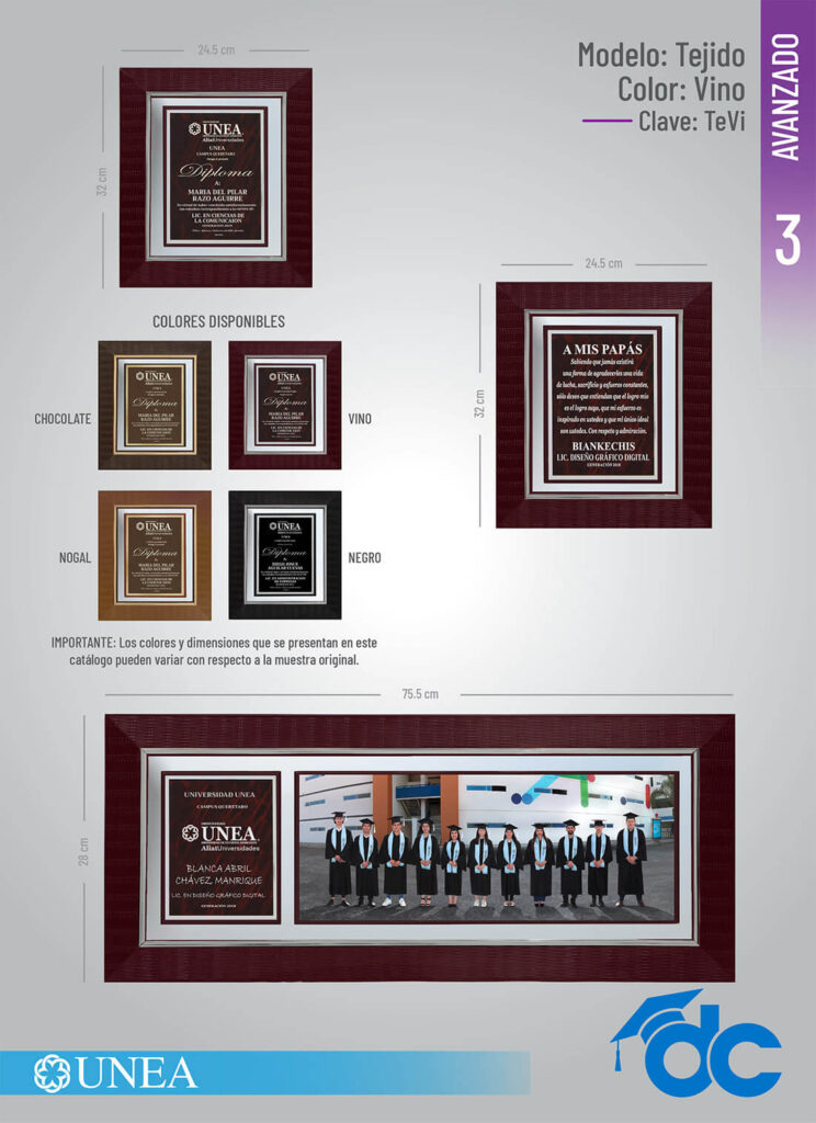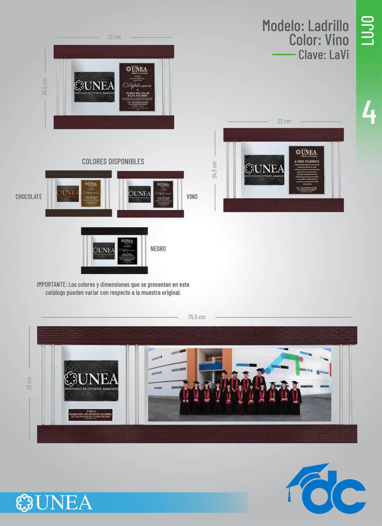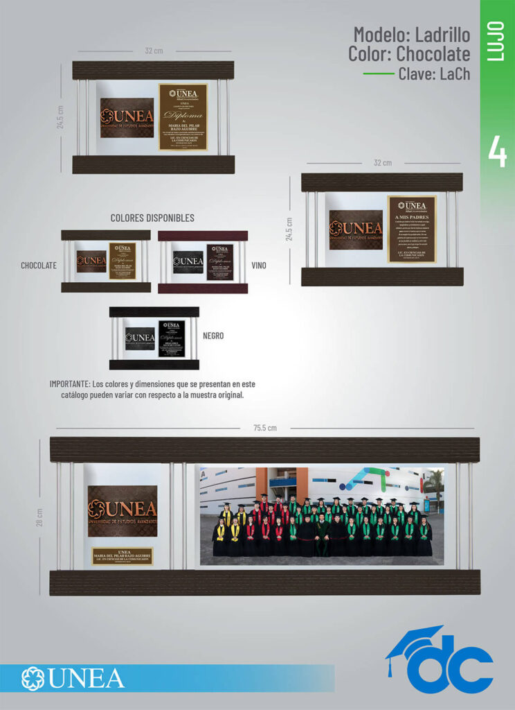 Los colores y dimensiones que se presentan en este catálogo pueden variar con respecto a la muestra original."